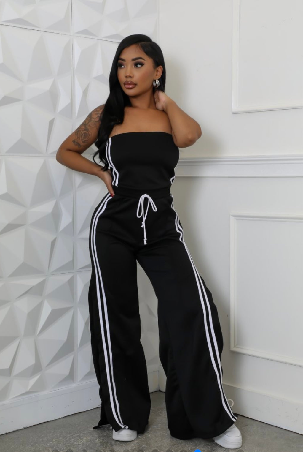Indulge in luxury with our Love Waits Jumpsuit. With its elegant design and sophisticated style, this jumpsuit is the perfect addition to your wardrobe. Made with high-quality materials, it is comfortable and timeless. Dress it up or down for any occasion and show off your classy and exclusive taste.