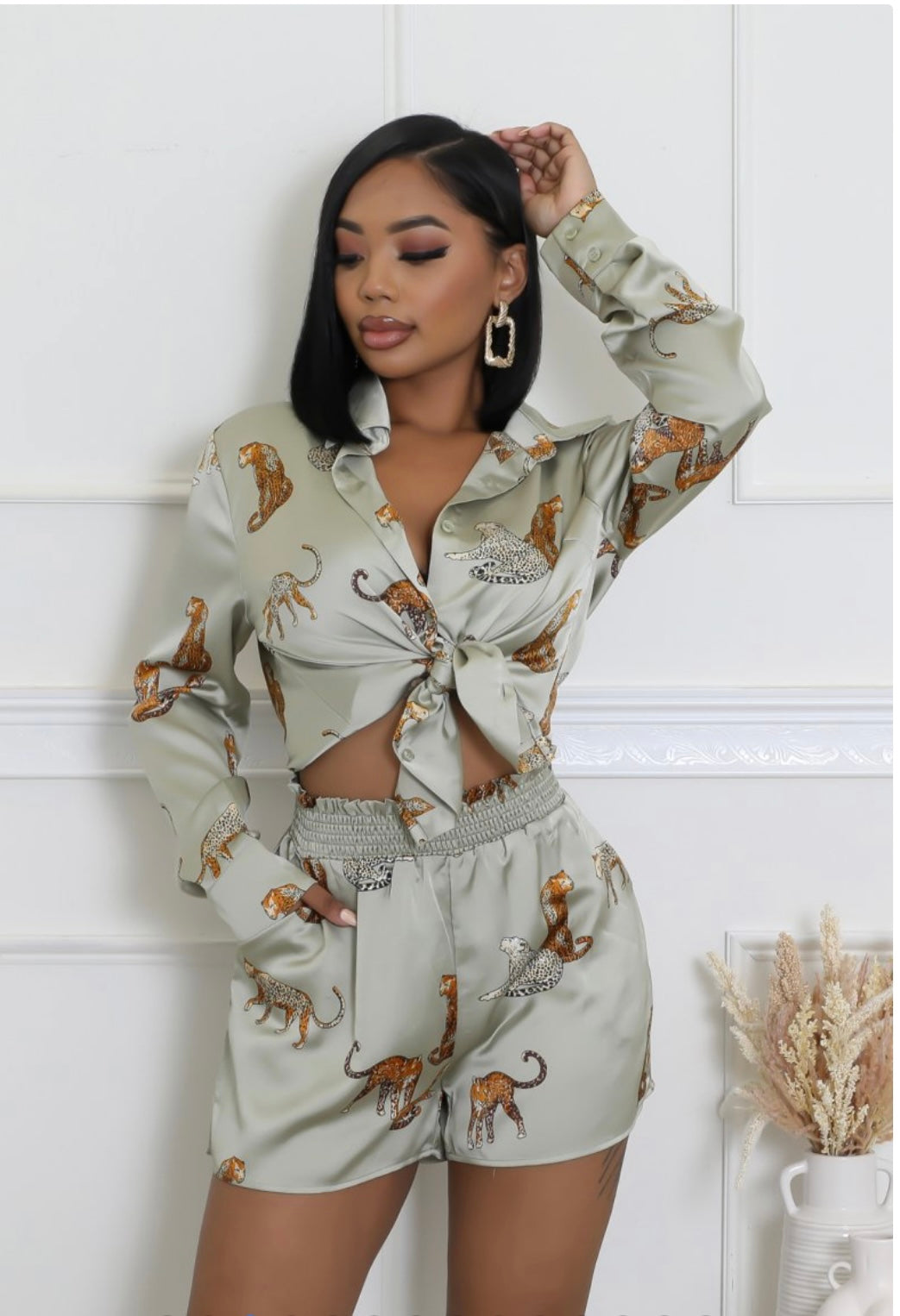 Indulge in the ultimate luxury with our Safari Short Set. This set features a unique safari-inspired design, crafted with the finest materials for a comfortable and stylish wear. Perfect for a day out or lounging at home, feel exclusive and elegant in this must-have set.